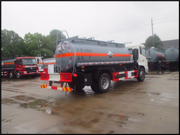 罐体采用碳钢制作外壳,厚度符合国标GB18564,衬塑容积10方左右,罐体截面正圆形,罐体内部通过钢网过度,内衬聚乙烯16MM厚,钢衬塑双隔板结构,罐顶1个全塑进料口,1个呼吸阀,带碳钢折叠护栏,罐顶带围边,围边内沥青防腐处理。罐体后尾部底口处1个DN100不锈钢内衬四氟紧急切断阀带紧急开关后保险杠控制,通过衬塑三通管道,后尾部左右各1个DN80塑料球阀带塑料出口。1个工具箱,PVC炮筒管2根,灭火器2只。罐体后尾部爬梯1只。